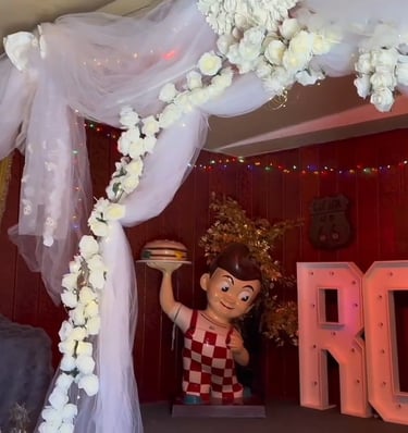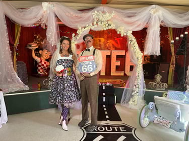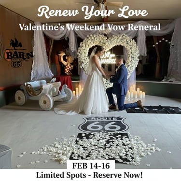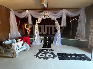 Ceremonies will be held daytime at The Barn Route 66 With your themed decorated Chapel.